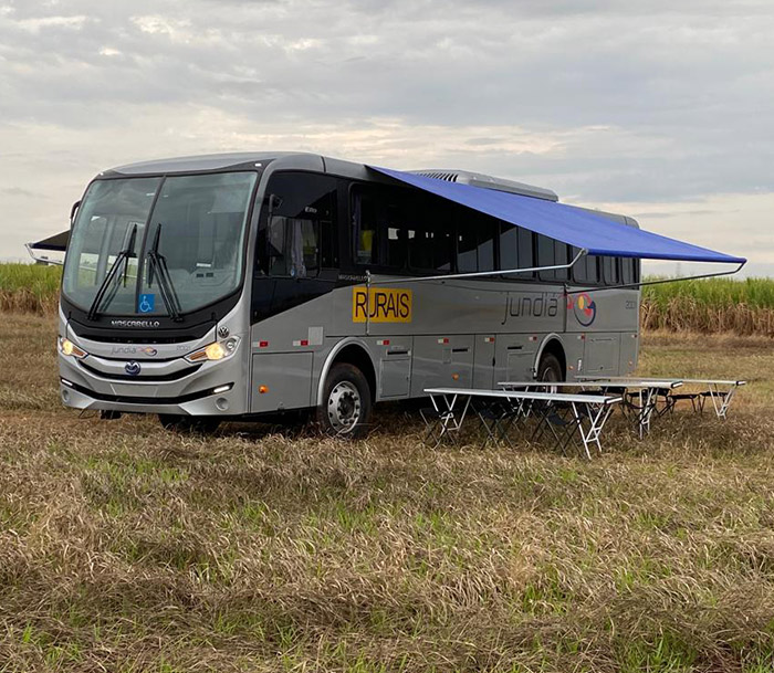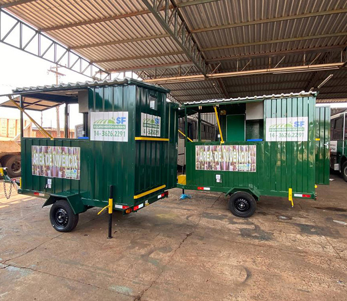 A TF Equipamentos Rurais desenvolveu a rea de Vivncia em nibus, praticidade para locomoo da estrutura, podendo facilmente ser instalada em qualquer rea.